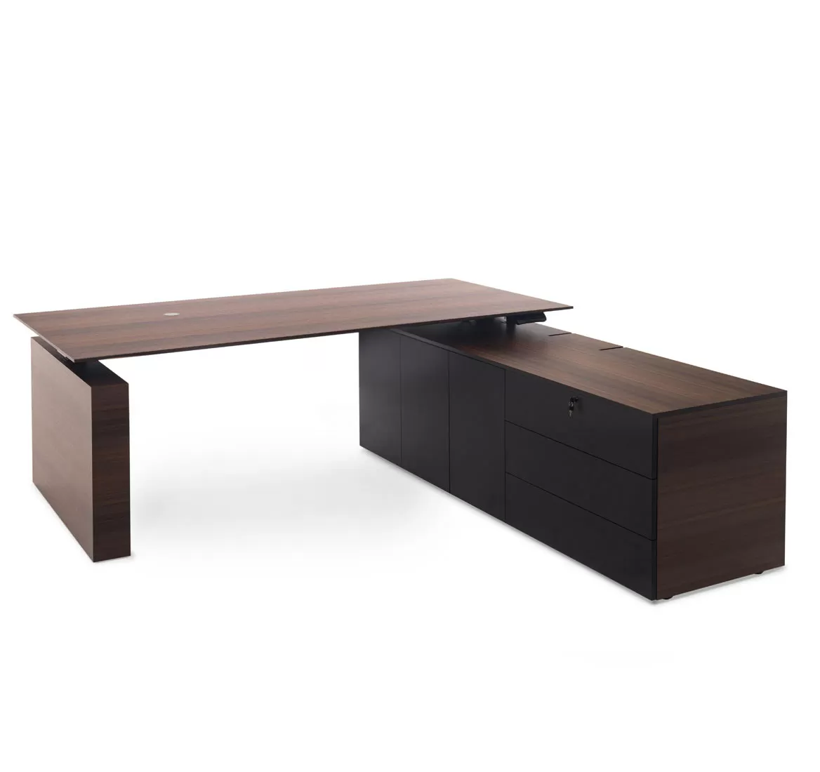 ТЕСЛА/TESLA Стол письм. с лев.тумбой СВ.ЭВКАЛИПТ/ЧЕРНЫЙ