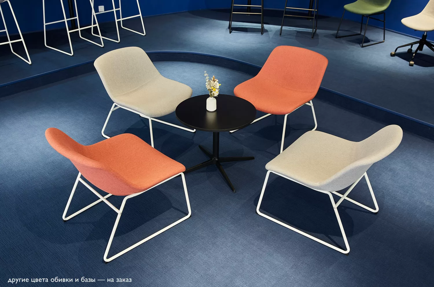 Погрузитесь в уют с креслом Capri Lounge! Его мягкая тканевая обивка и продуманные пропорции создают идеальные условия для отдыха и вдохновения. Строгая черная металлическая база эффектно контрастирует с мягкими очертаниями кресла. В коллекции три модели: на полозьях, регулируемая по высоте версия на крестовине и уютный лаундж-вариант. Кресло идеально дополнит пространство ресепшена, кабинета руководителя или зоны для неформальных встреч.