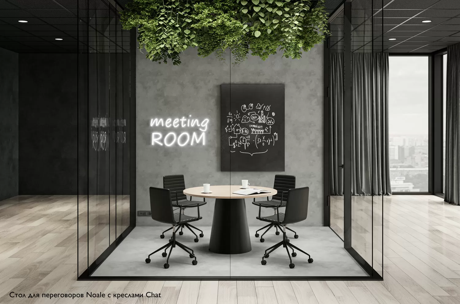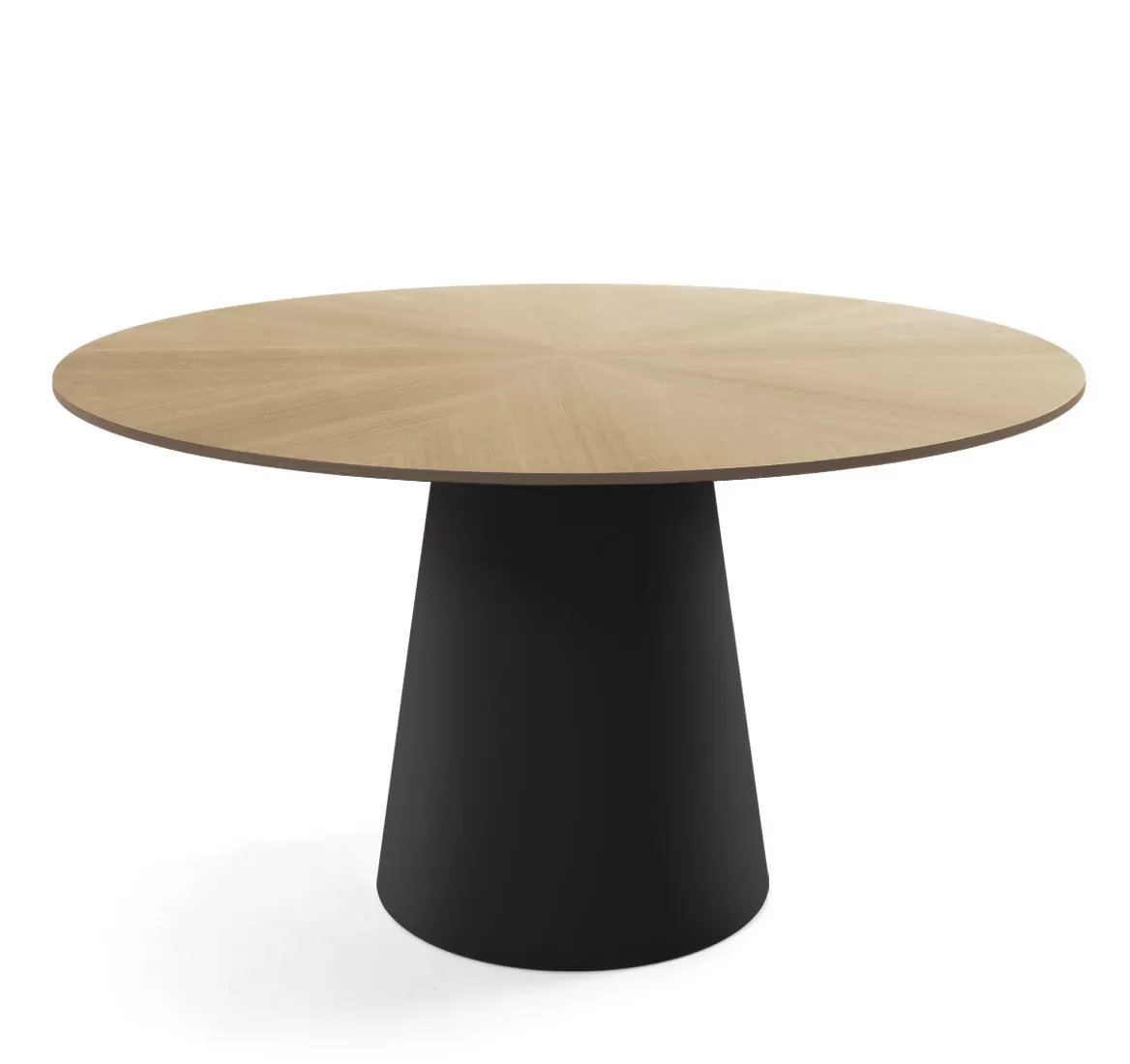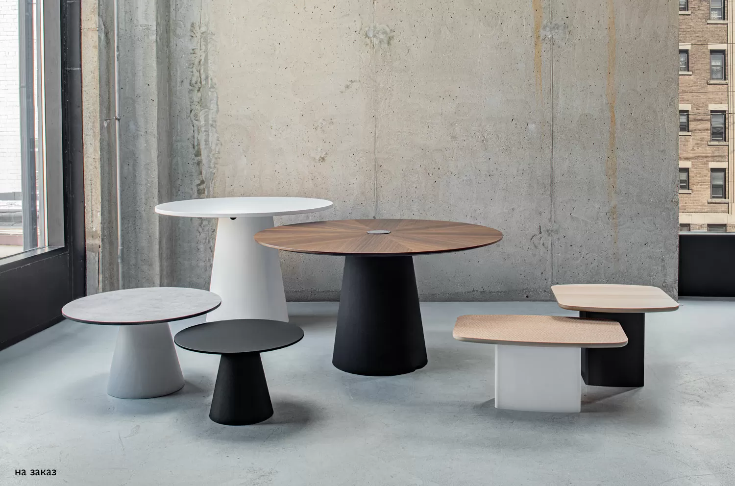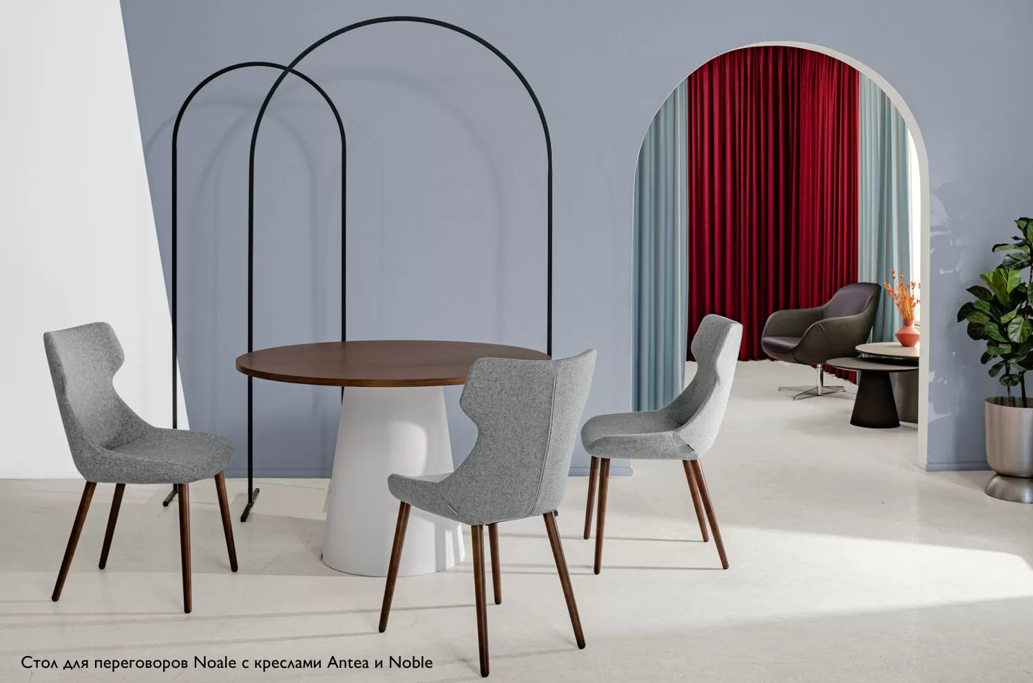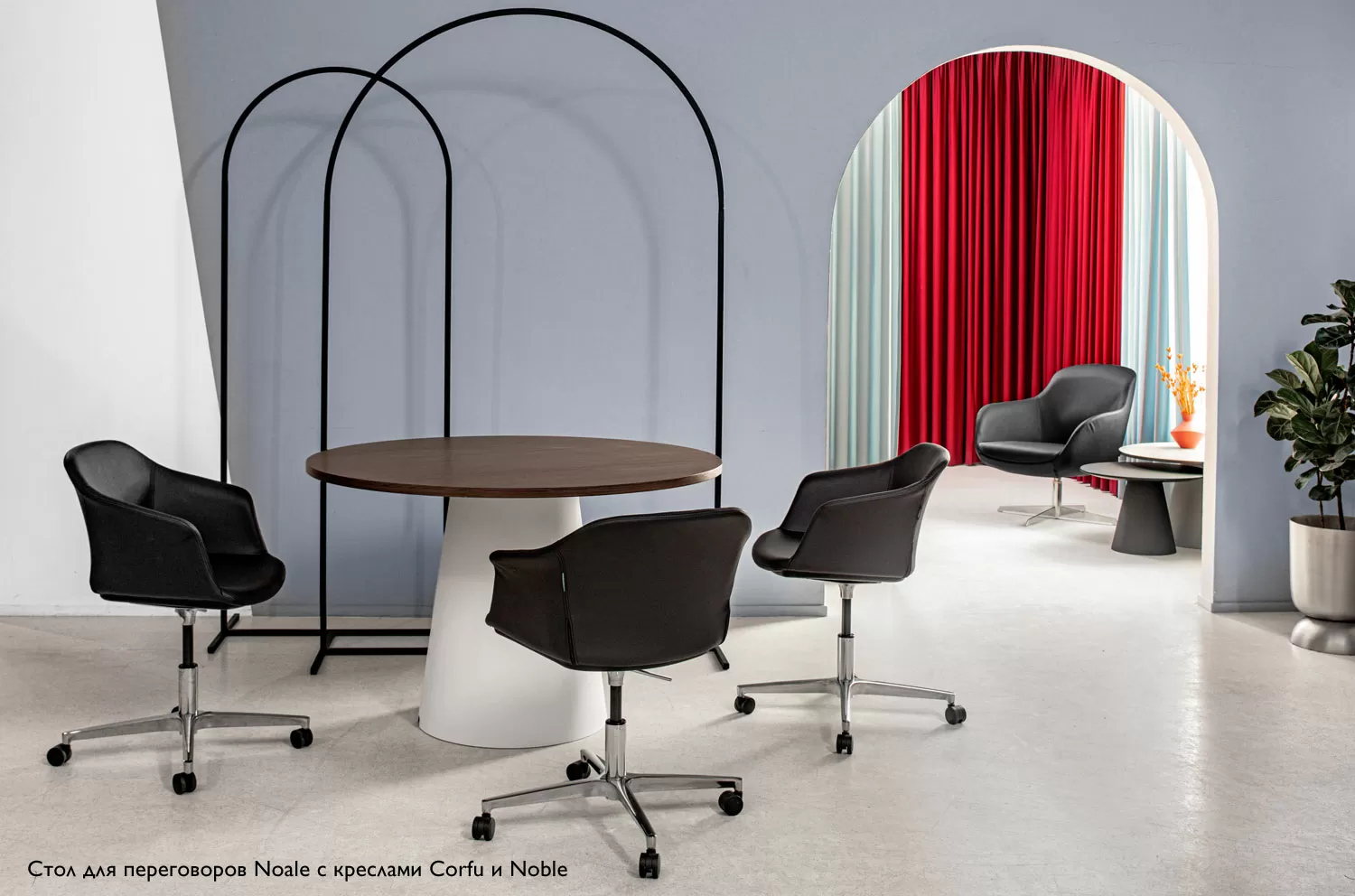 Стол для переговоров Ноале создает атмосферу открытого диалога и равноправного общения. Круглая столешница доступна в двух диаметрах и двух вариантах отделки — шпон или меламин. Выразительные конусообразные опоры с порошковым покрытием становятся элегантным акцентом интерьера. Универсальное решение для переговорных разных площадей сочетает продуманный дизайн с практической функциональностью, создавая комфортную рабочую среду.