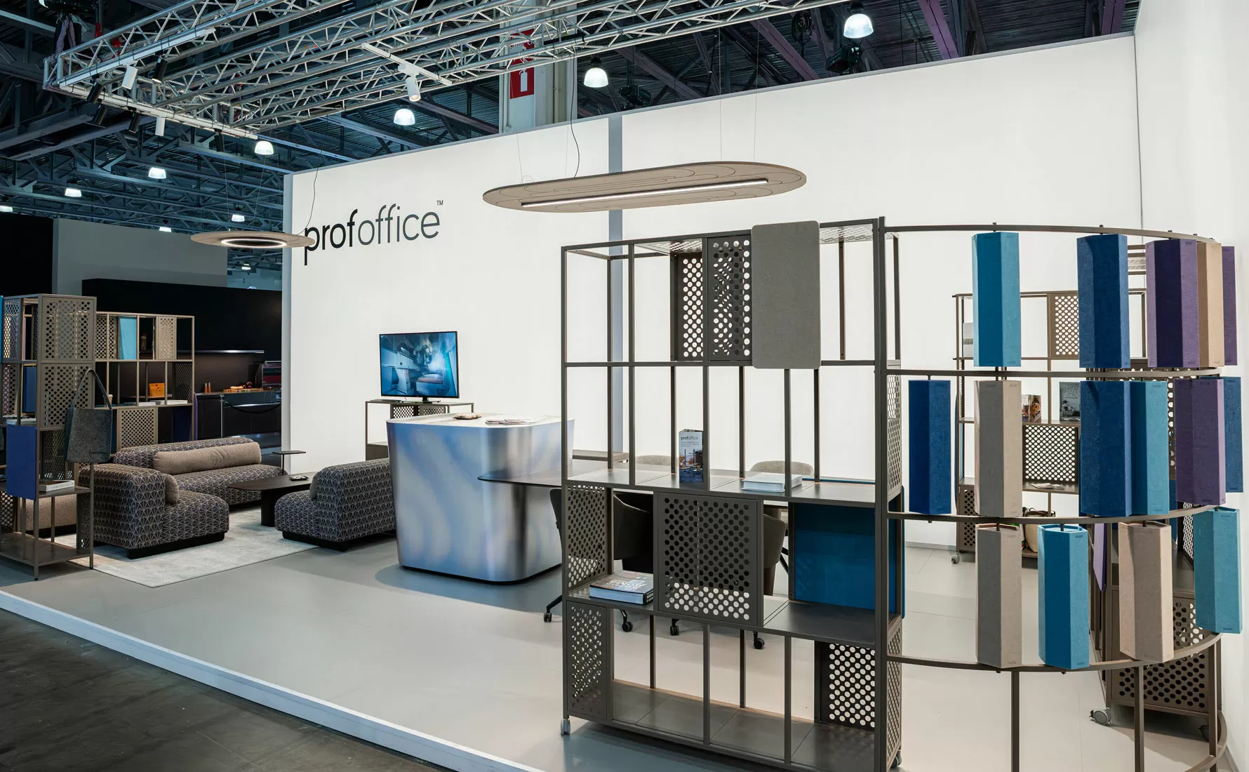 Обрамлением экспозиции послужило масштабное световое полотно — продукт, созданный специально к выставке и демонстрирующий потенциал нашего светотехнического департамента. Представленные потолочные подвесные светильники стали воплощением синтеза акустики и эргономики света. Цветовая температура 4000K обеспечивает естественное нейтрально-белое освещение, идеальное для рабочих и общественных пространств: оно не утомляет глаза и поддерживает высокую концентрацию внимания.